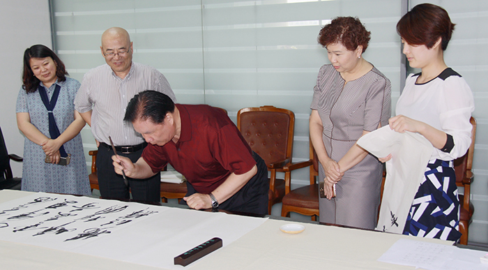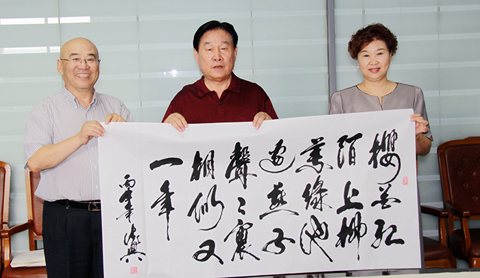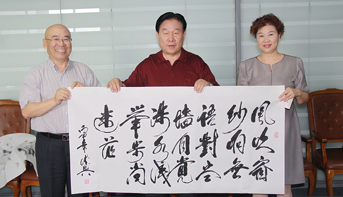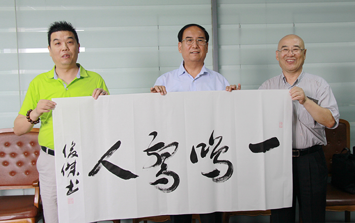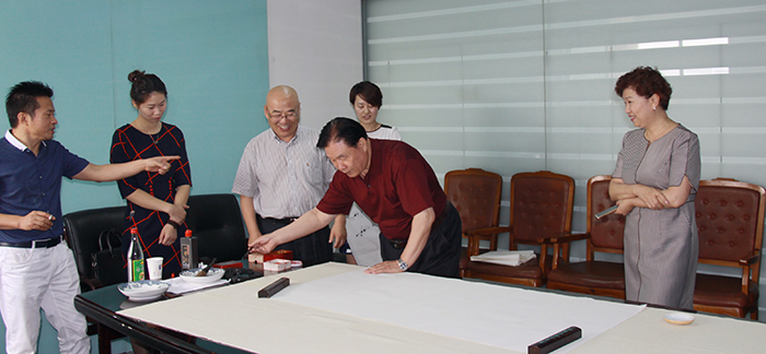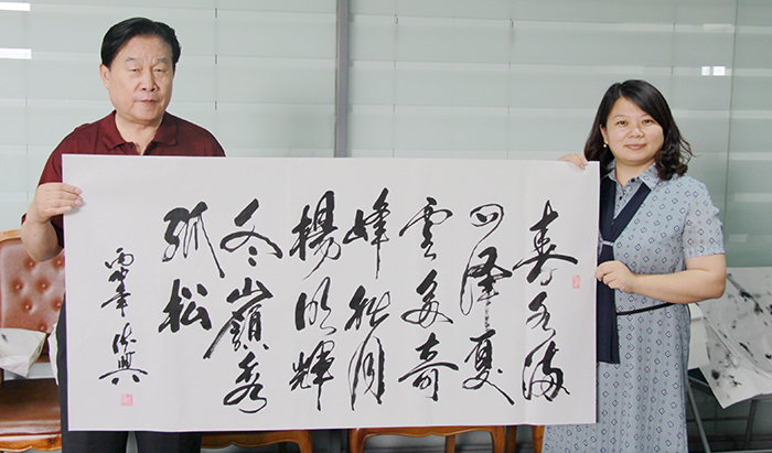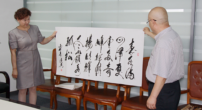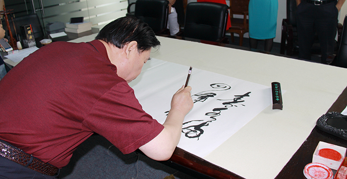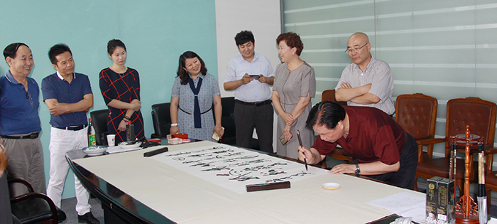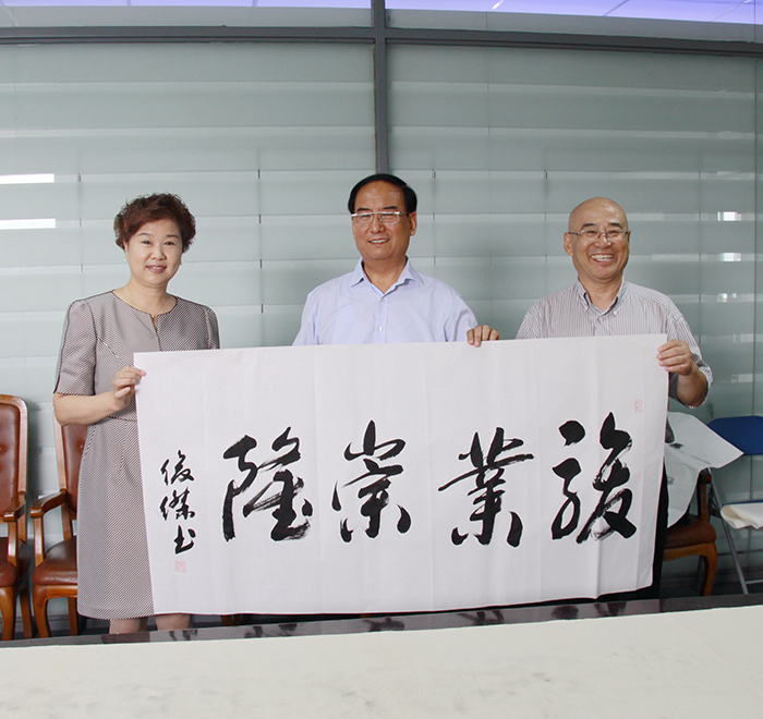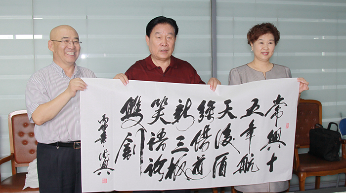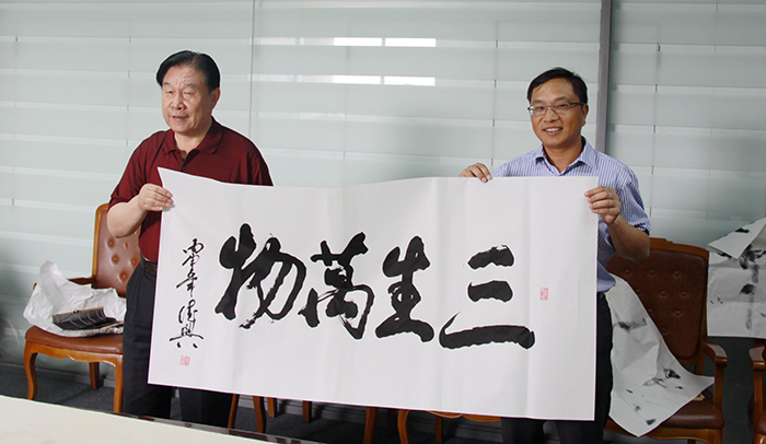 董事長楊迺文先生即興作詩一首,由王書記提筆賜墨,表明創業艱難,現如今可以笑談“雙創”,創新、創業、創品牌。