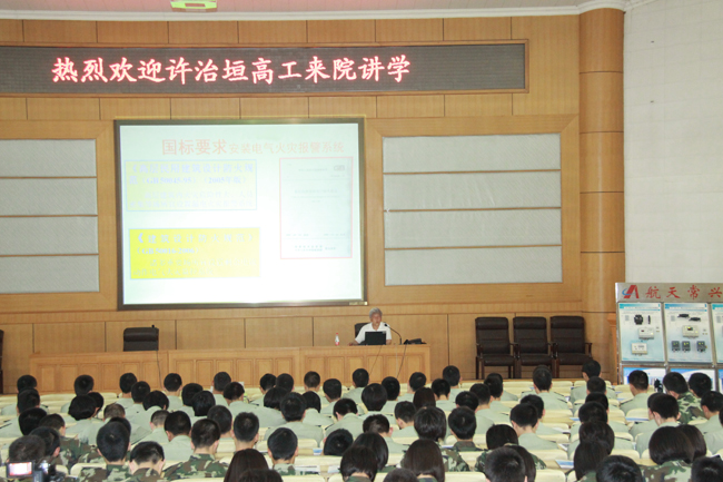 2012年5月18日下午,公司總工程師許治垣、常務副總李超、市場部經理王玥等其他6名員工,受邀在河北廊坊中國人民武裝警察部隊學院講座,講座受到武警學院全體師生的重視,近400名消防工程系師生參加,講座主要講述了電氣火災監控的必要性,電氣火災的發展現狀,電氣火災監控系統的組成,國家對電氣火災監控的相關規范,以及電氣火災的發展趨勢等。講座氛圍十分活躍,互動較好,全體學生對電氣火災監控系統有了更進一步的認識