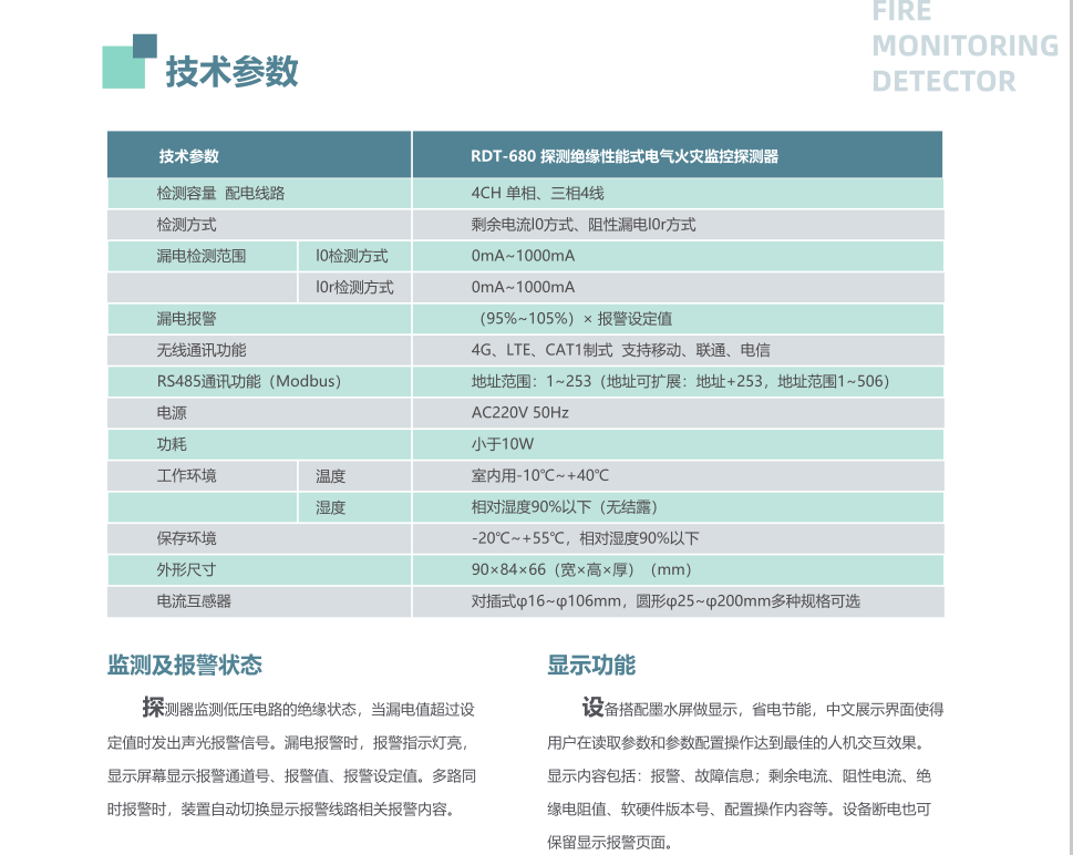 RDT-680 探測絕緣性能式電氣火災(zāi)監(jiān)控器